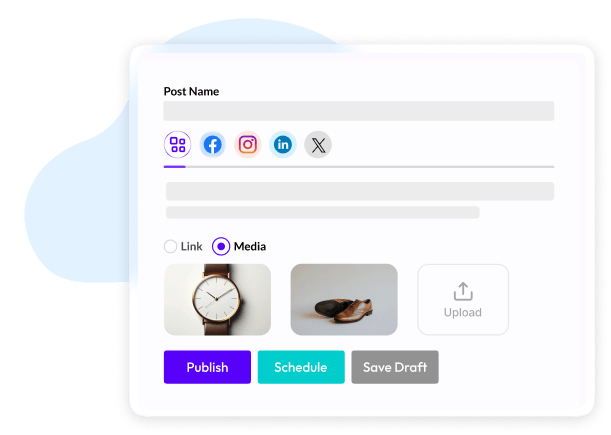 With Social Media Software, schedule your posts for optimal times or publish them instantly across connected social platforms, ensuring maximum reach and engagement.